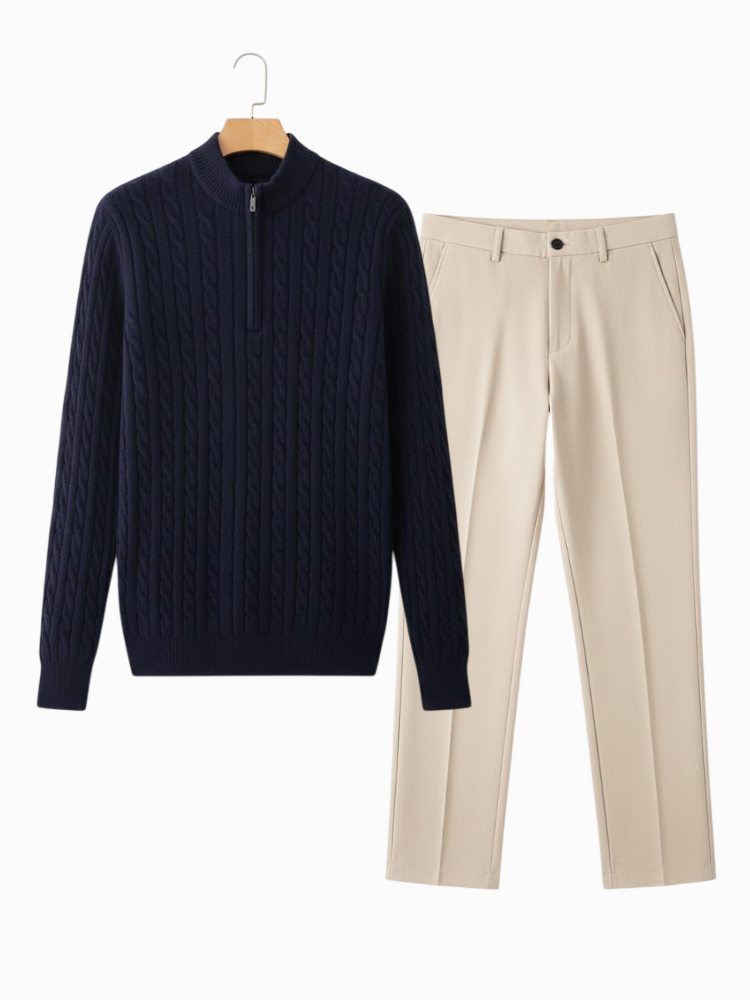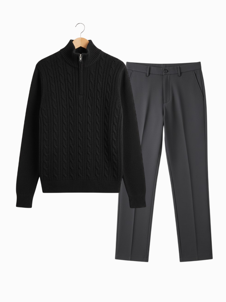 Caliah - Elegant Winter Set Casual Trousers and Texturized Zip Sweater